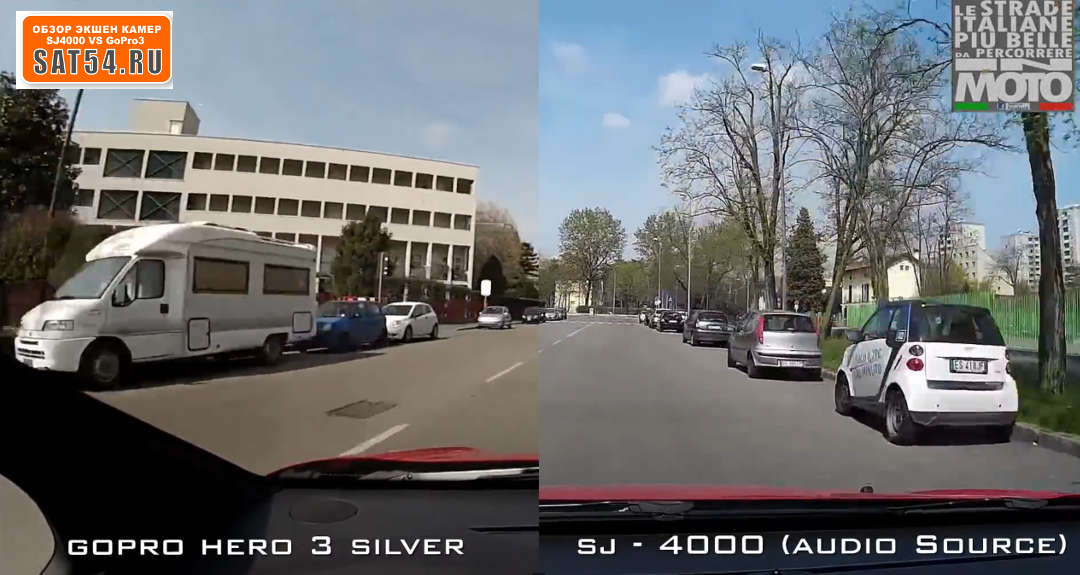 Работа камер в качестве автомобильных регистраторов. Вырезка из ролика. На мой взгляд - всё очень и очень близко по качеству. Единственное- GoPro снимает в более теплых тонах.