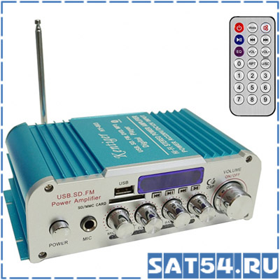 HY802 - это усилитель мощности звука выполненный в металлическом корпусе, предназначен для усиления мощности звукового сигнала в диапазоне частот от 20 до 20 000 Гц. Выполнен в виде самостоятельного устройства. Имеет большое количество регулировок, в числе которых эффекты эхо и реверберация. Есть поддержка FM. В приборе присутствуют слоты для USB и MicroSD флешек и вход 6,3 мм для микрофона. Приятным дополнением является пульт ду с которым вы сможете управлять устройством на расстоянии.