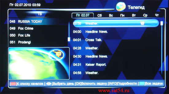 Возвращаясь к ранее описываемой работе функции EPG, напомню, что там можно запрограммировать запись программ по времени. Назначенные задания появляются и в разделе "Расписания".